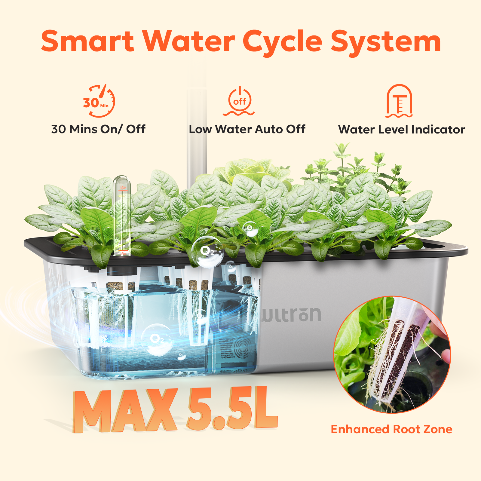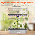 - Adjustable Height & 5.5L Tank: The extendable pole supports plants up to 30 inches tall, accommodating the changing needs of hydroponic growing systems and all growth stages of indoor gardening plants, thereby saving space. Never limit seed choices due to height! The smart pump runs efficiently every 30 minutes, circulating water, oxygenating roots, and delivering nutrients. The low-water indicator, designed for indoor herb gardens, eliminates over-/underwatering risks.