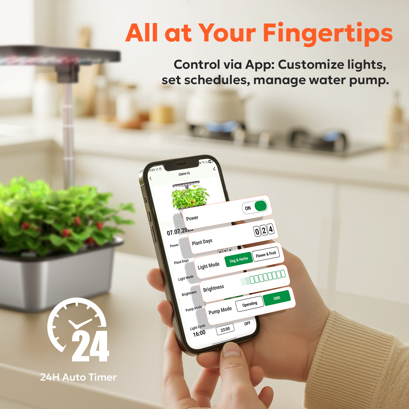 - Effortless Smart App & User-Friendly: Set up your hydroponic growing system in minutes with easy-to-follow manuals and app guides. Our garden kit indoor uses the Smart Life App, which can: adjust the 24-hour light cycle/ automatic timer (default: 16H on/ 8H off), track growth days, and maintain perfect conditions. Nurture vibrant plants effortlessly and enjoy homegrown harvests. This indoor garden is designed for easy use, suitable for all ages.